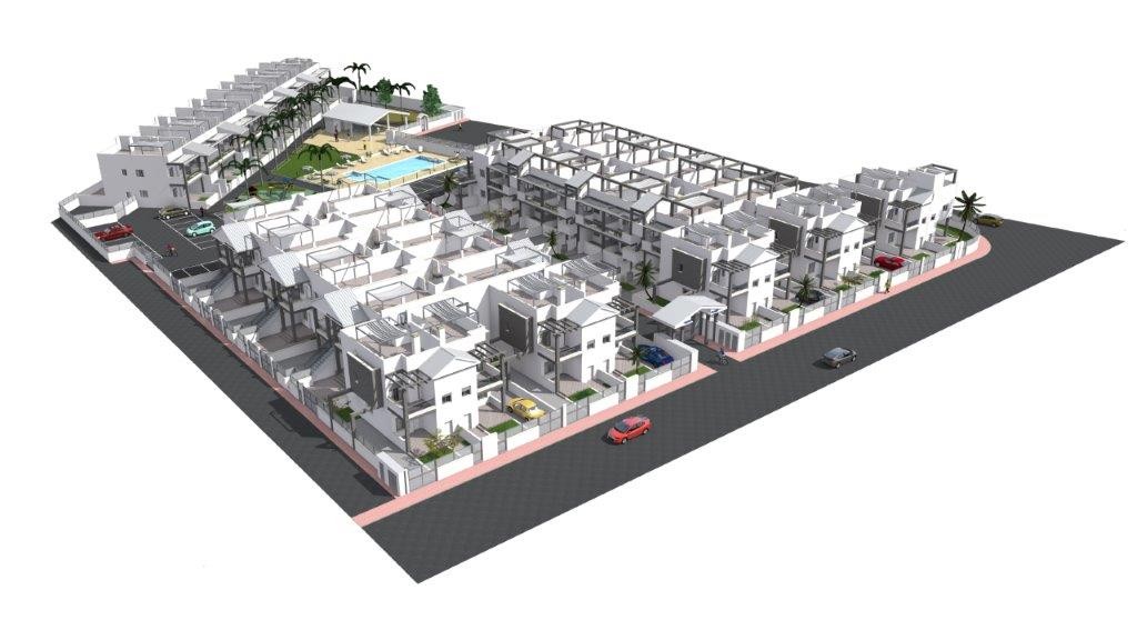 Det vil være et flott beplantet fellesområde med basseng med barnebasseng og jacuzzi. Det vil også bli en lekeplass og parkeringsplasser. Inkludert i prisen er det baderomsmøbler og dusjvegger, samt hvitevarer på kjøkkenet. Boligene vil ha varmekabler på badene og blir levert med air condition på hovedsoverommet og i stuen.