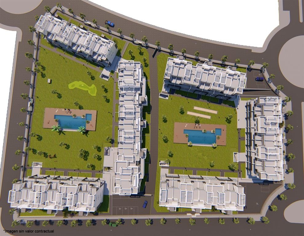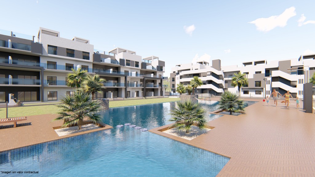 Disse flotte, moderne leilighetene ligger bare 2 km fra de fantastiske sandstrendene i Guardamar og 400 meter fra de vakre lagunene La Mata. De er bygget i et rolig grønt område og likevel nær alle fasiliteter. Ulike golfbaner og kjøpesentre samt motorveien kan nås på noen få minutter med bil. Flyplassene i både Alicante og Murcia ligger kun 30 minutter unna med bil.