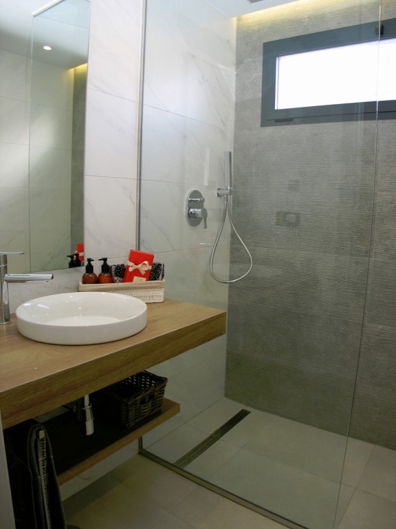 I den komplette boligpakken inngår: Fullt utstyrte bad inkludert dusj-skjermer i begge, full belysningspakke og en enda høyere standard på kjøkkenet, sikkerhetsdør, tilrettelegging for klimaanlegg, doble vinduer og garderober.