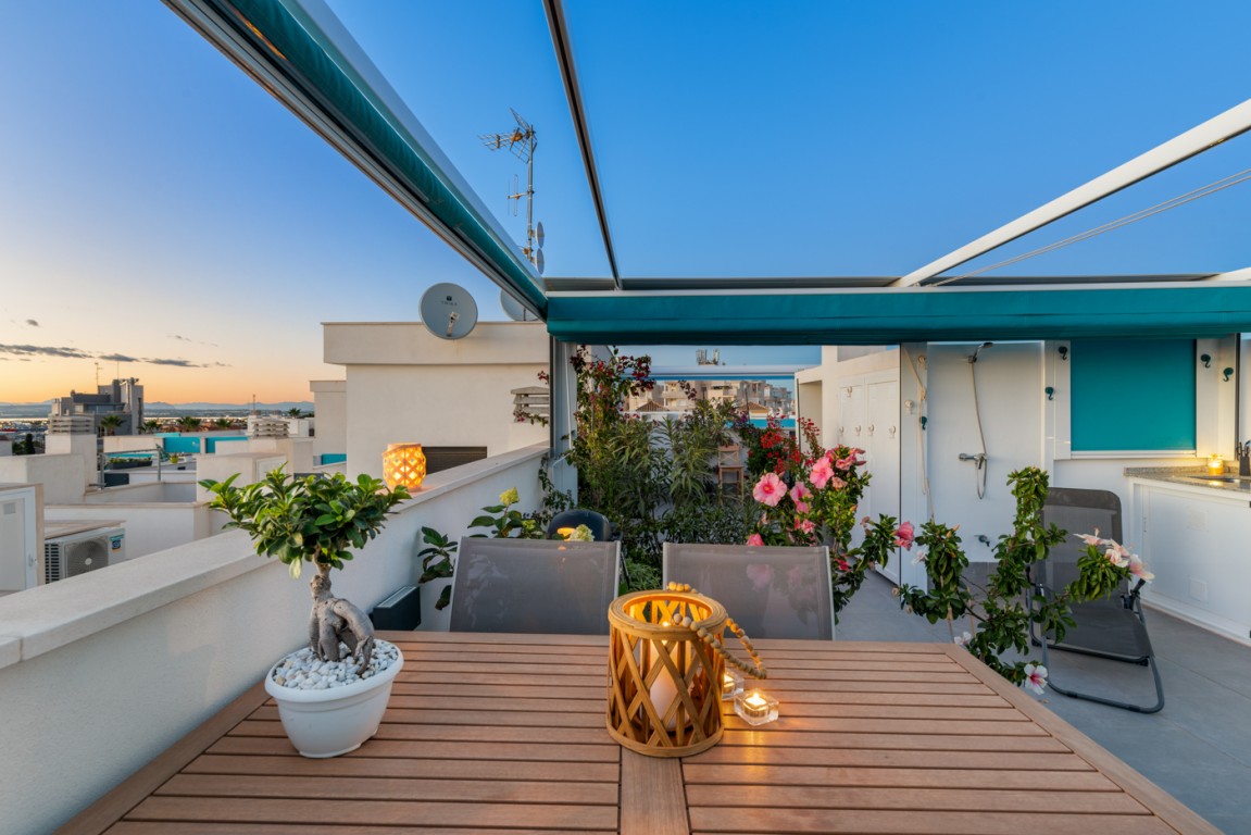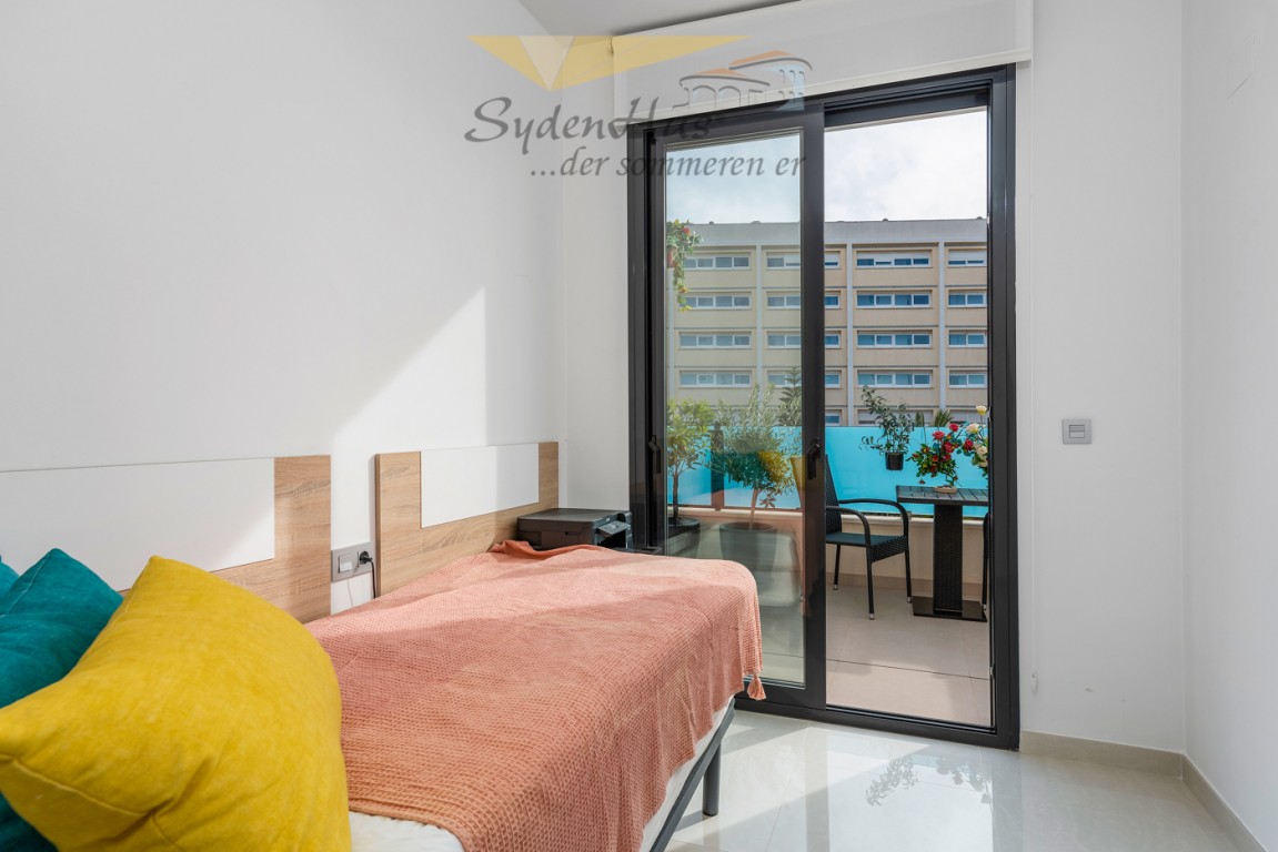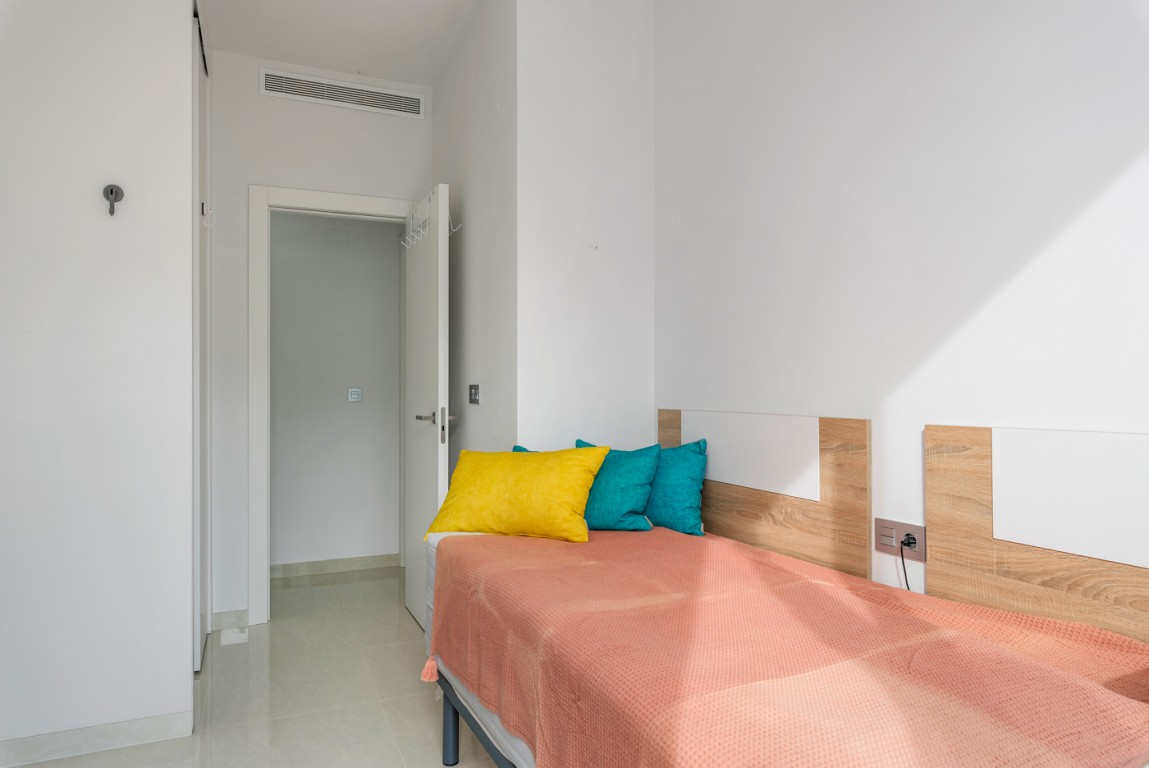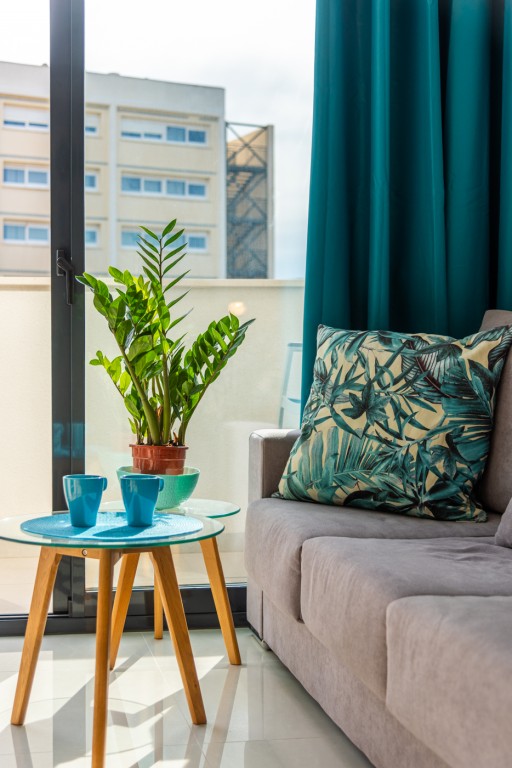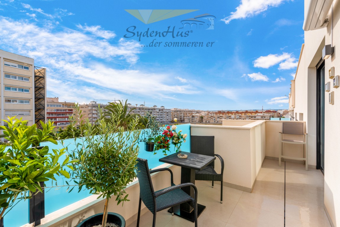 Leiligheten ligger i et nytt boligprosjekt på "taket av Torrevieja" og ligger blant den godt etablerte bebyggelsen i Torrevieja. Her kan du finne ro og glede i urbane omgivelser.