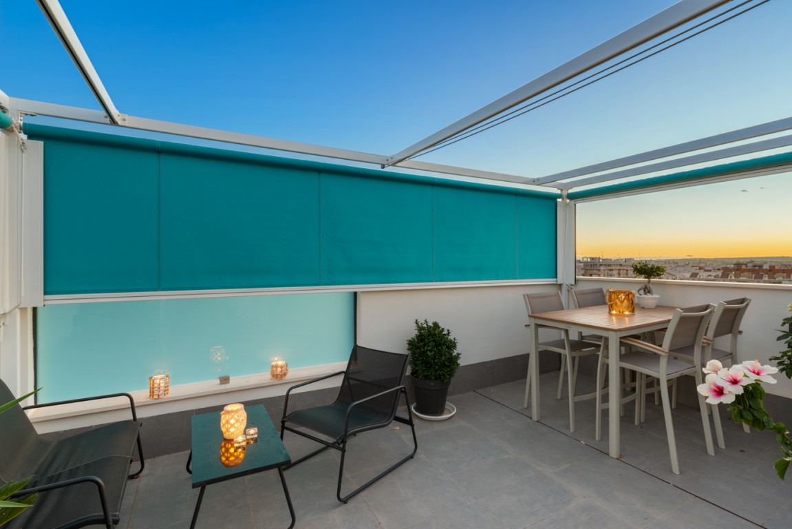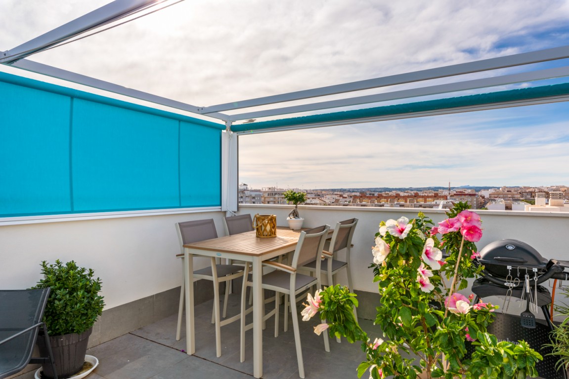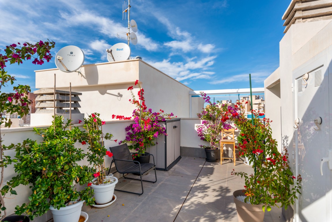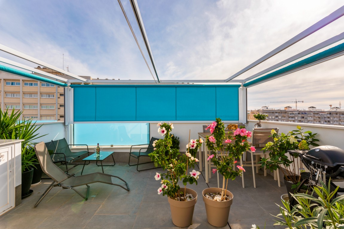 Leiligheten ligger i et nytt boligprosjekt på "taket av Torrevieja" og ligger blant den godt etablerte bebyggelsen i Torrevieja. Her kan du finne ro og glede i urbane omgivelser.