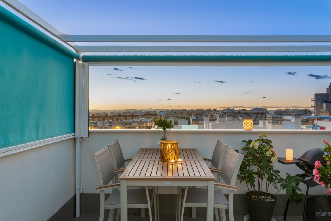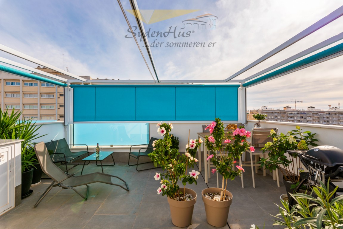 I tillegg til den store terrassen  utenfor stue har leiligheten eksklusiv takterrasse på 45 kvm  m/utekjøkken, beplantning og grill.  Pergola på takterrasse som gjør at du kan nyte takterrassen uansett om det regner - eller om du vil skjerme for solen.