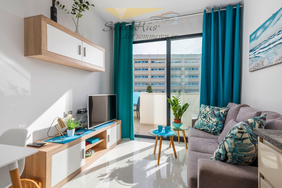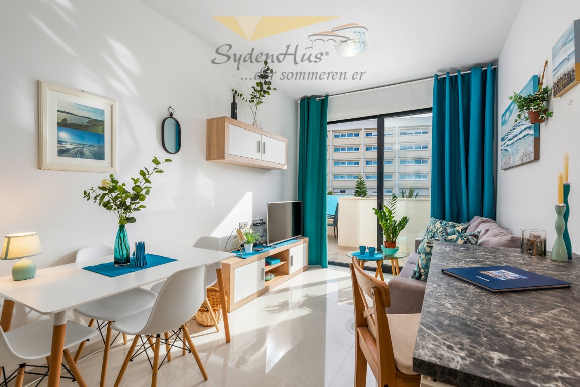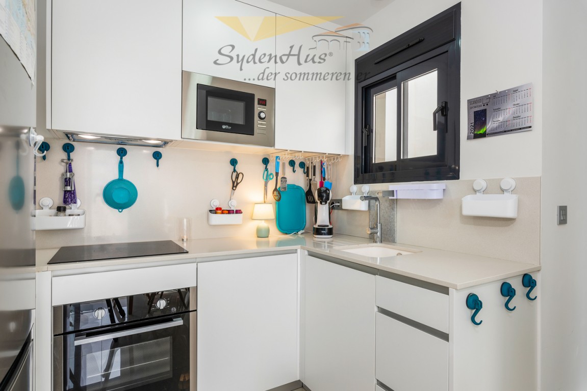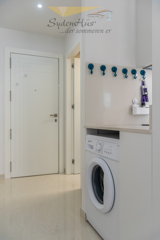 Boligen er fullt utstyrt og møblert med alle hvitevarer på kjøkken (micro, kjøl/frys, komfyrtopp/stekovn, oppvaskmaskin, kaffemaskin, vannkoker m.m.).  Vaskemaskin under bardisk i entre.  Terrassen er utstyrt med spisebord m/4 stoler + lite kafebord m/2 stoler.  Terrassen har motorisert markise.
